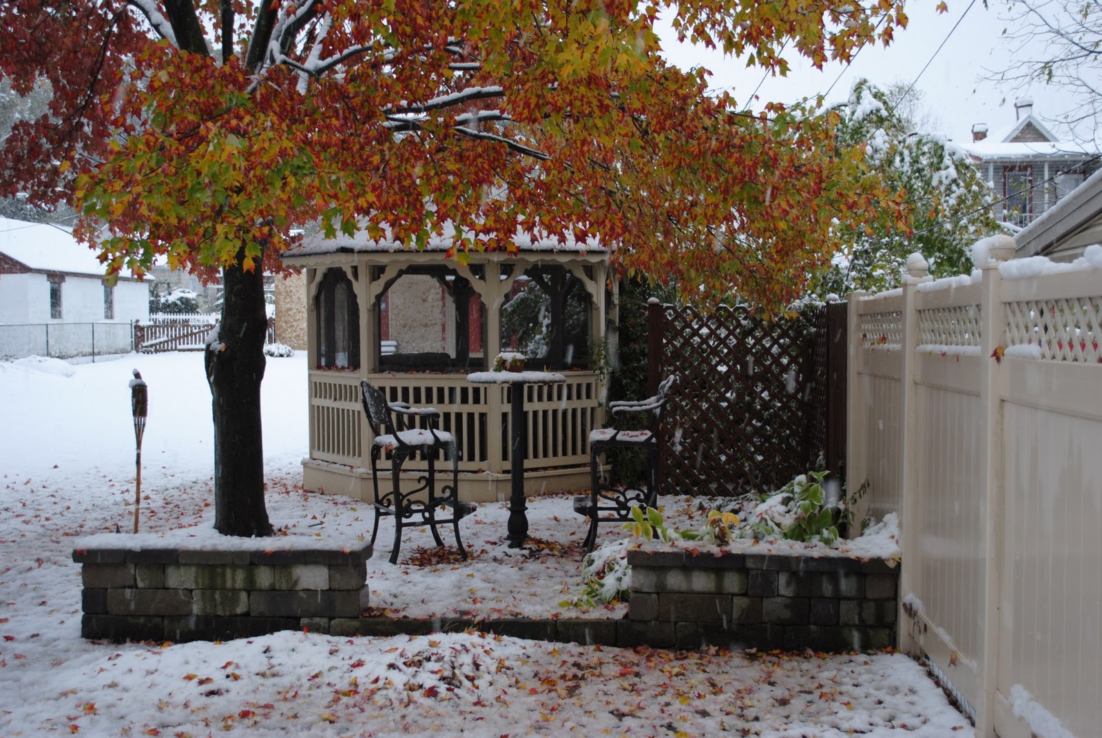 What?!?! Snow in October? I have to admit...I didn't think the weather forecast was correct and I didn't believe it until I saw it on Saturday. So I didn't prepare (notice all of the leaves on the ground that I chose to neglect and not rake on Friday!). And I know you are all dying to see a picture of sweet Adalyn all bundled up...